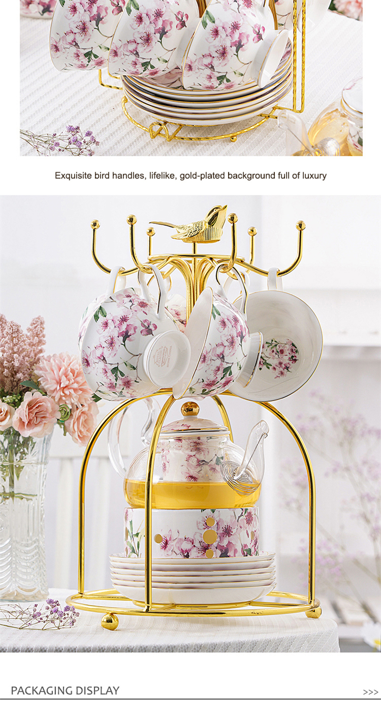 European-style ceramic glass flower teapot set, high-end heat-resistant afternoon tea flower tea cup and tea set set