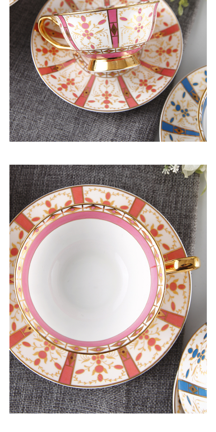 European-style small luxury coffee cup set bone china afternoon tea set ceramic english golden rim black tea cup