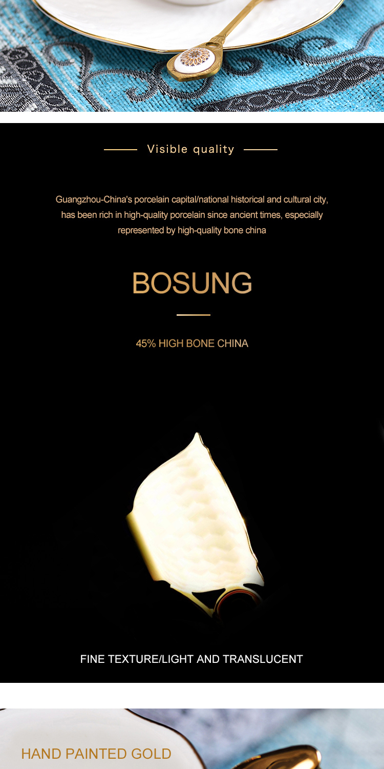 Home Hospitality Supplies Dinnerware Cup Guangzhou Bo-Sung Tableware Manufacture Co., Ltd. Ceramic coffee cup and saucer small luxury British bone china light luxury modern home afternoon tea cup set