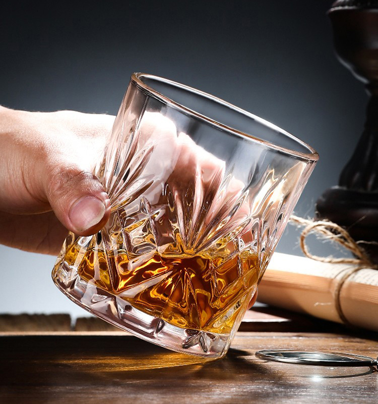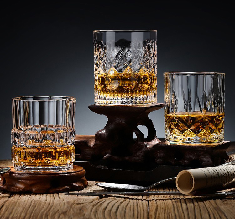 HUAHANGNA Wholesale Engrave Old Fashioned Round Heavy Base Clear Liquor Cocktail Whiskey Glass for Bar Party