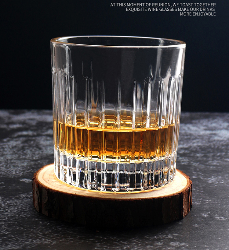 300ml Wholesale Custom Logo Ripple Engrave Round Drinking Clear Whiskey Glass Cup