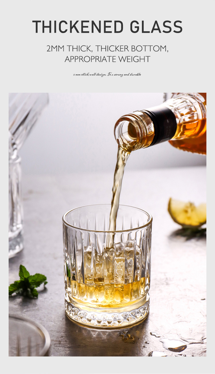 Heavy Base Engrave Rock Barware Glass 350ml Old Fashioned Bar Glass Whiskey Glasses for Cocktail Liquor