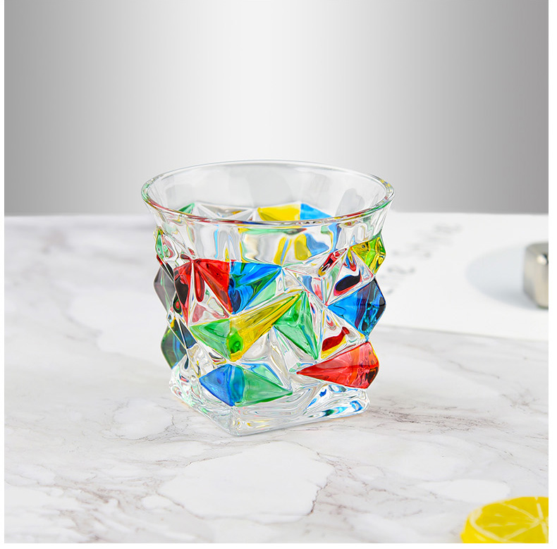 Home Hospitality Supplies Dinnerware Cup Wuhan Xinhuahang Household Goods Co., Ltd. 300ml 10 Ounce Lead Free Hand Painted Spirit Bourbon Cocktail Colored Glass Whiskey Cup with Decanter
