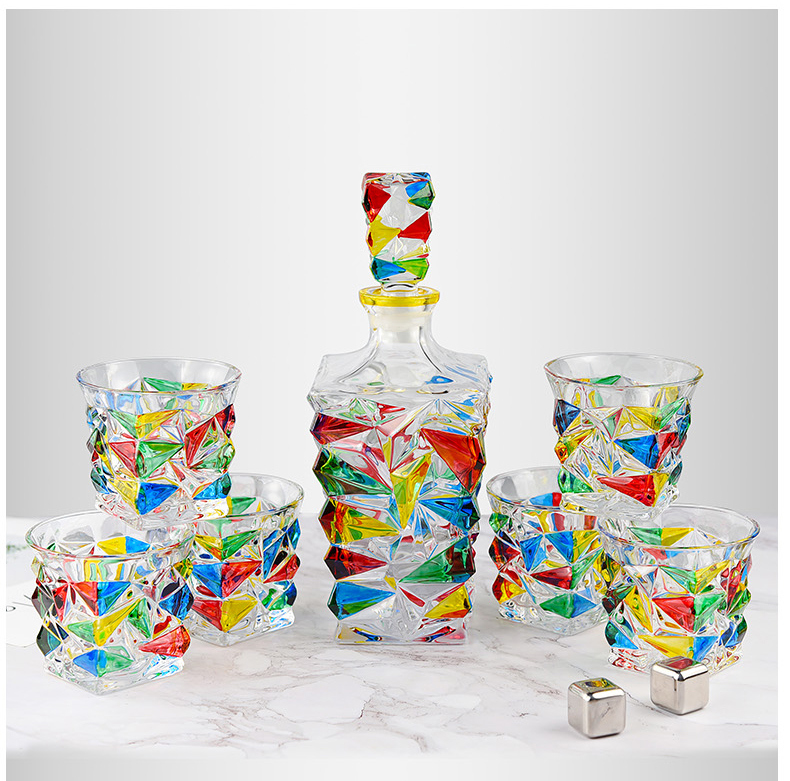 300ml 10 Ounce Lead Free Hand Painted Spirit Bourbon Cocktail Colored Glass Whiskey Cup with Decanter