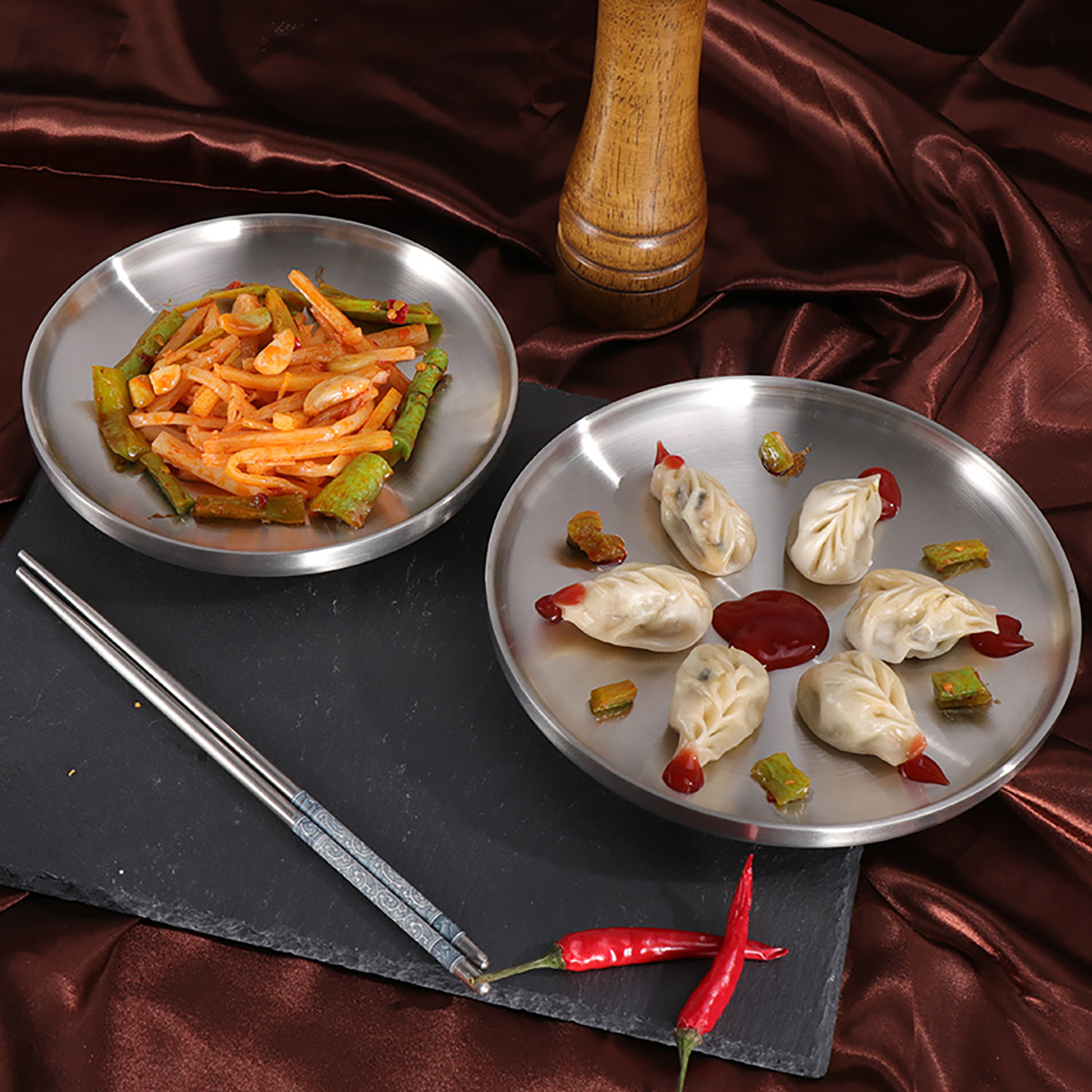 Steel tray stainless for snack round metal tray with double walls stainless steel food tray