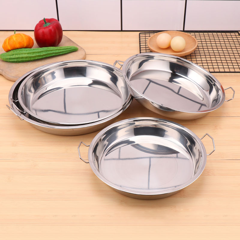 Stainless Steel Round Serving Tray Set Dish Plate Round Food Tray Deep Plate Sets With Double Handle