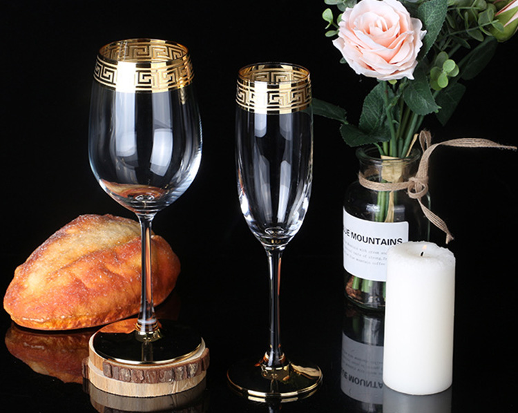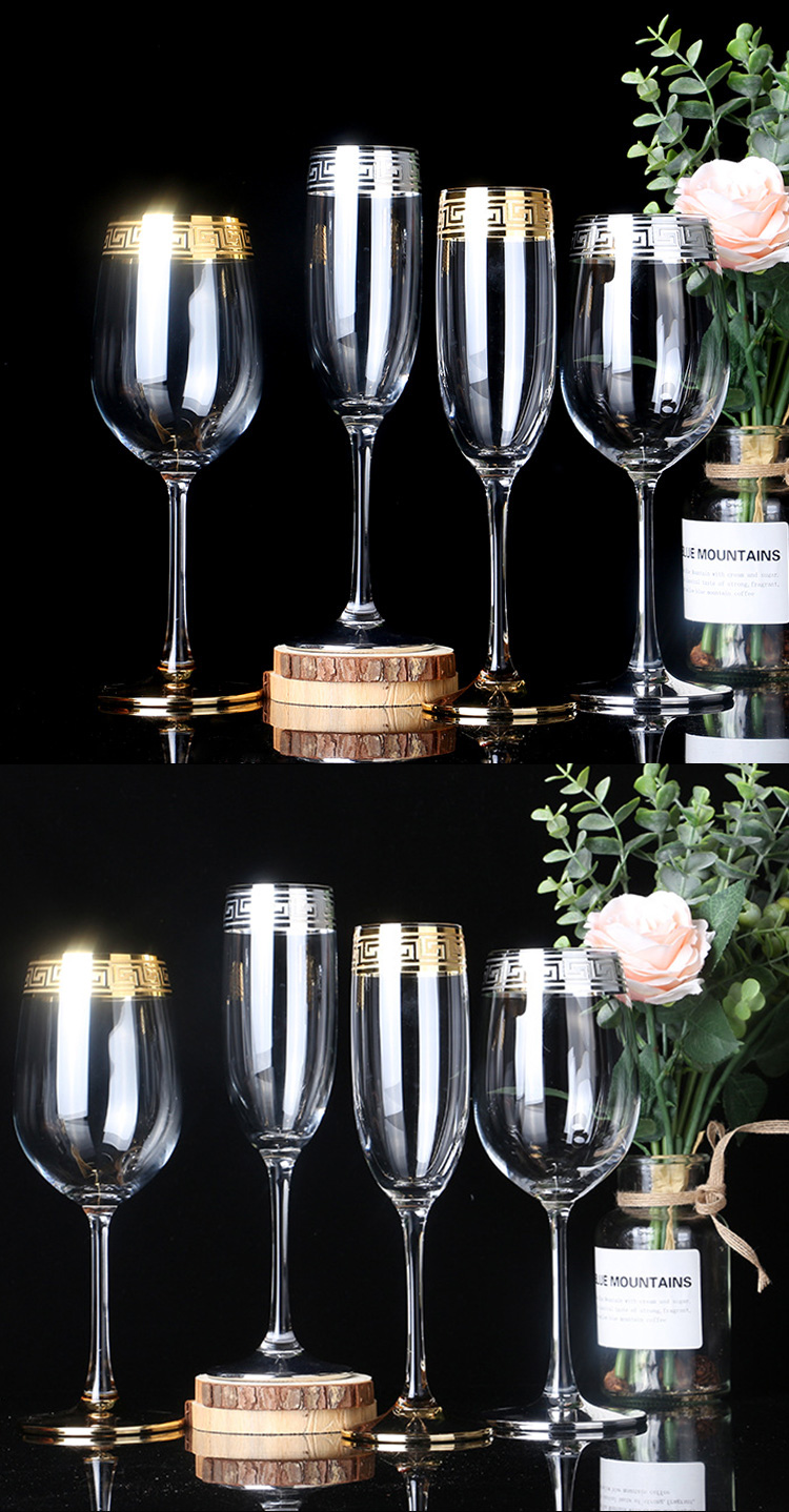 Home Hospitality Supplies Dinnerware Cup Wuhan Xinhuahang Household Goods Co., Ltd. European Luxury Multi-Size Electroplated Gold or Sliver Rim Champagne Red Wine Glass Goblets for Wedding Celebration Party