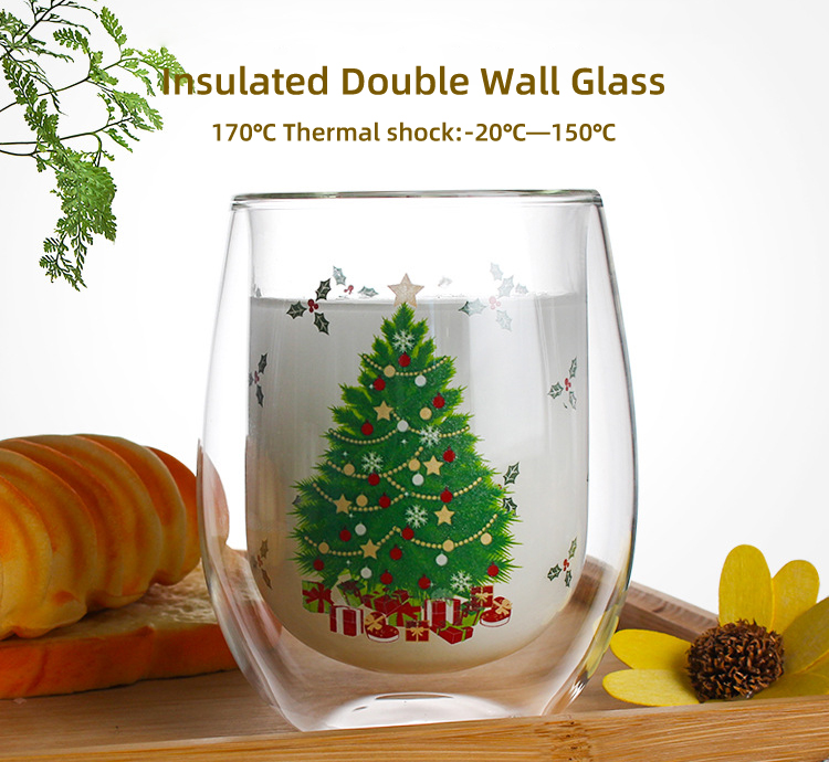 Acceapt Custom Logo Borosilicate Glass Insulated Christmas Festival Promotional Double Wall Glass for Coffee Latte Hot Tea