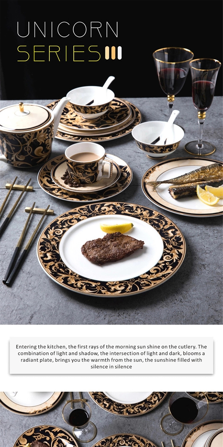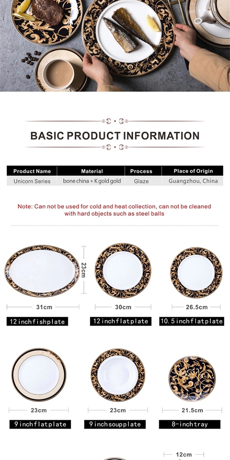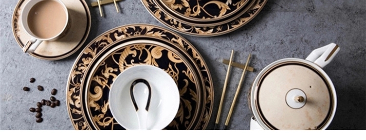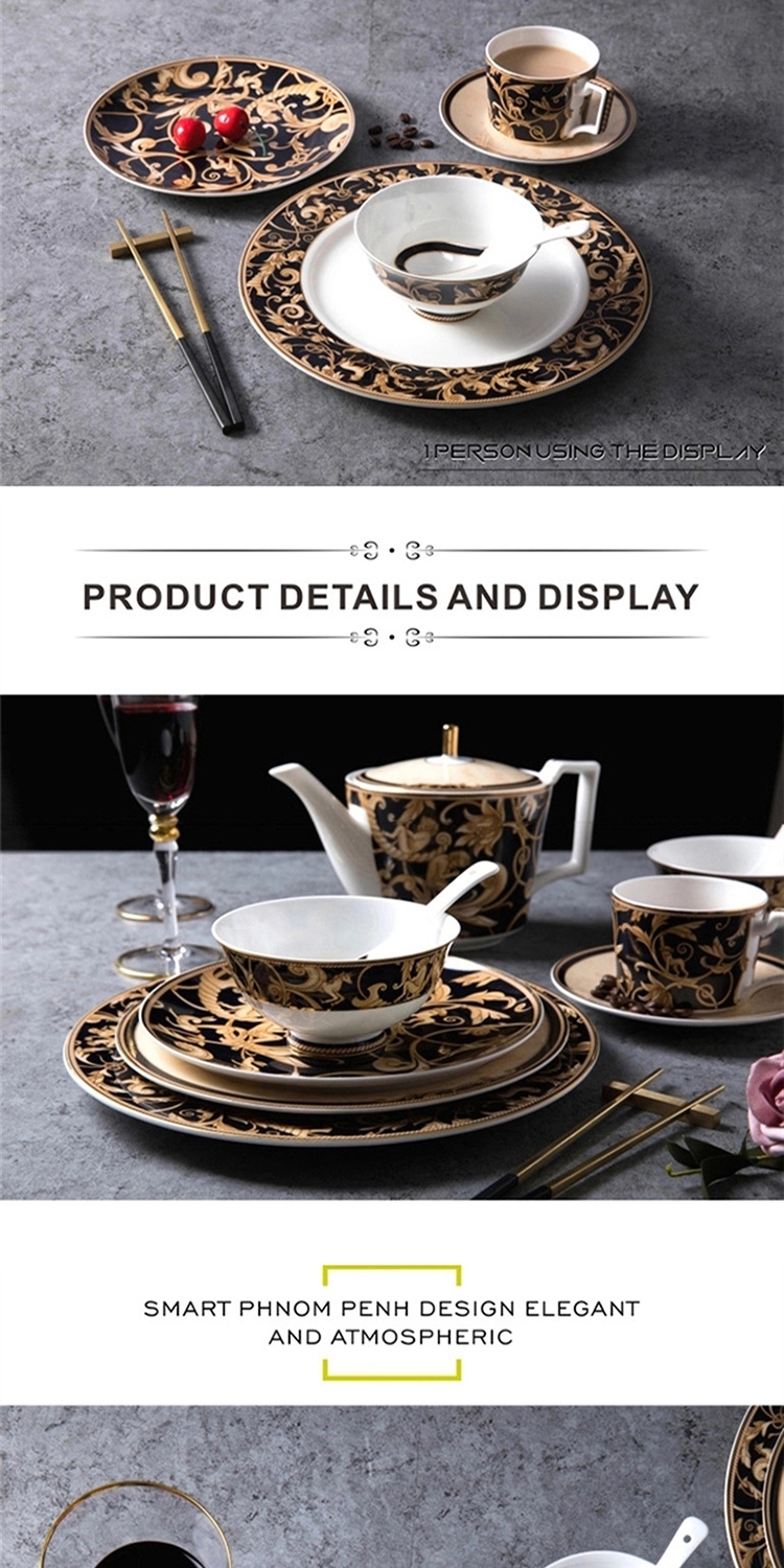 Product Name: | New design luxury black gold dinner set bone china dinnerware sets luxury porcelain tableware |
