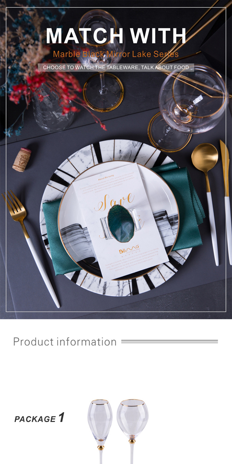 Home Hospitality Supplies Dinnerware Dinnerware Set Guangzhou Bo-Sung Tableware Manufacture Co., Ltd. High Quality Ceramic Dinner Set Western Hand Painted Ceramic Plates Gold Black Dinner Set Bone China For Restaurant Dinnerware