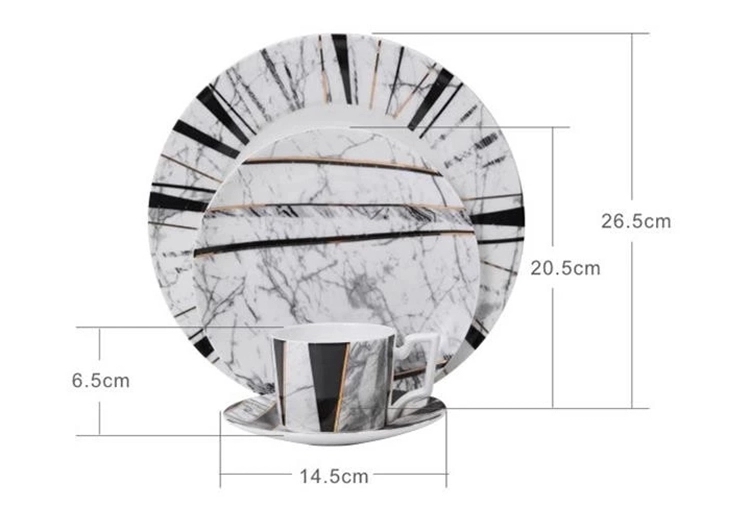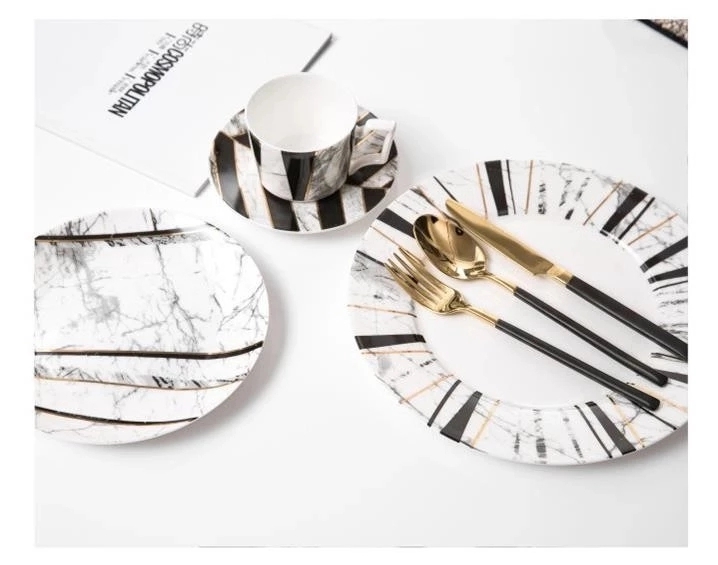Latest design high end dinner set porcelain restaurant black white dinnerware wholesale charger plates for wedding