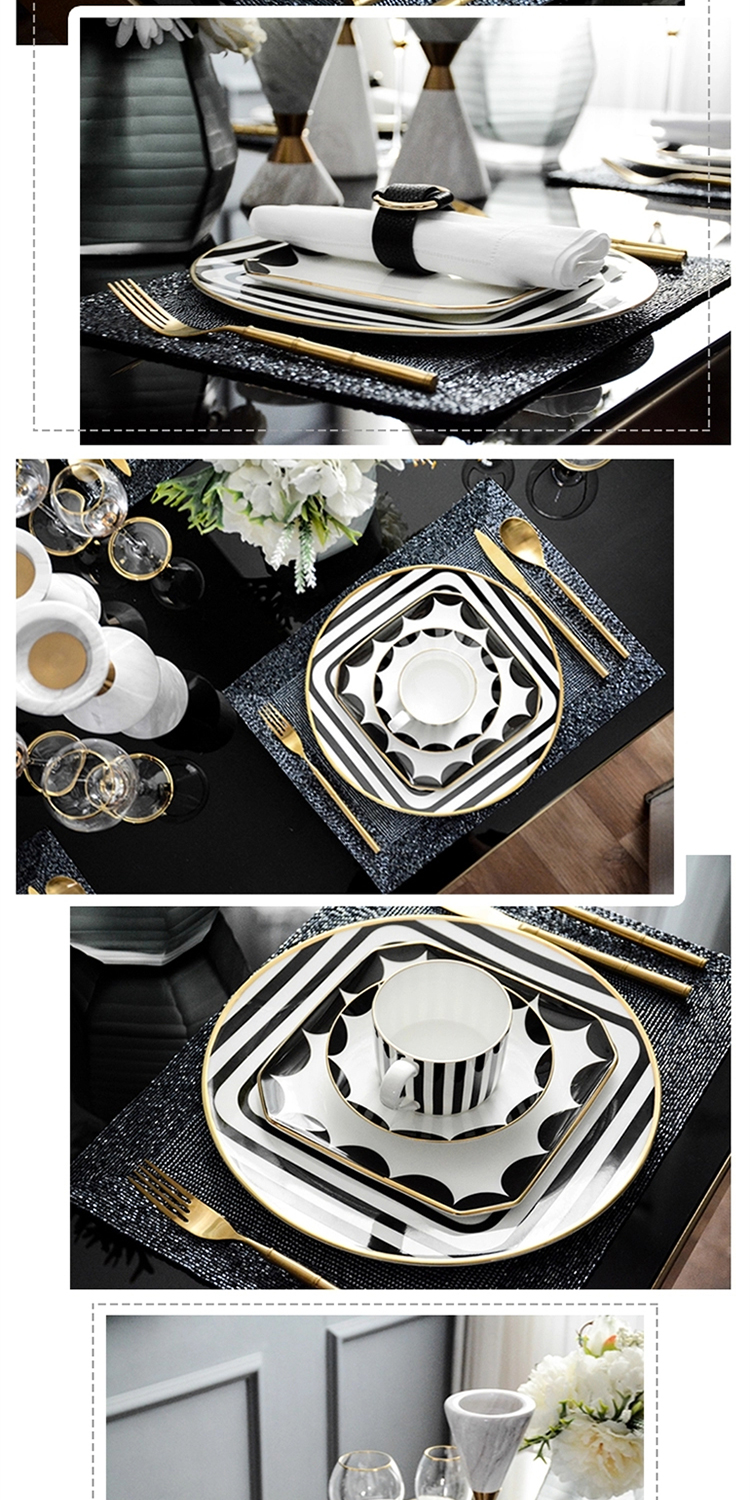 Tableware Dinnerware Set Bosung Black Stripe Bone China Dinner Set Wedding Party Charger Plates Size In 12 Inches