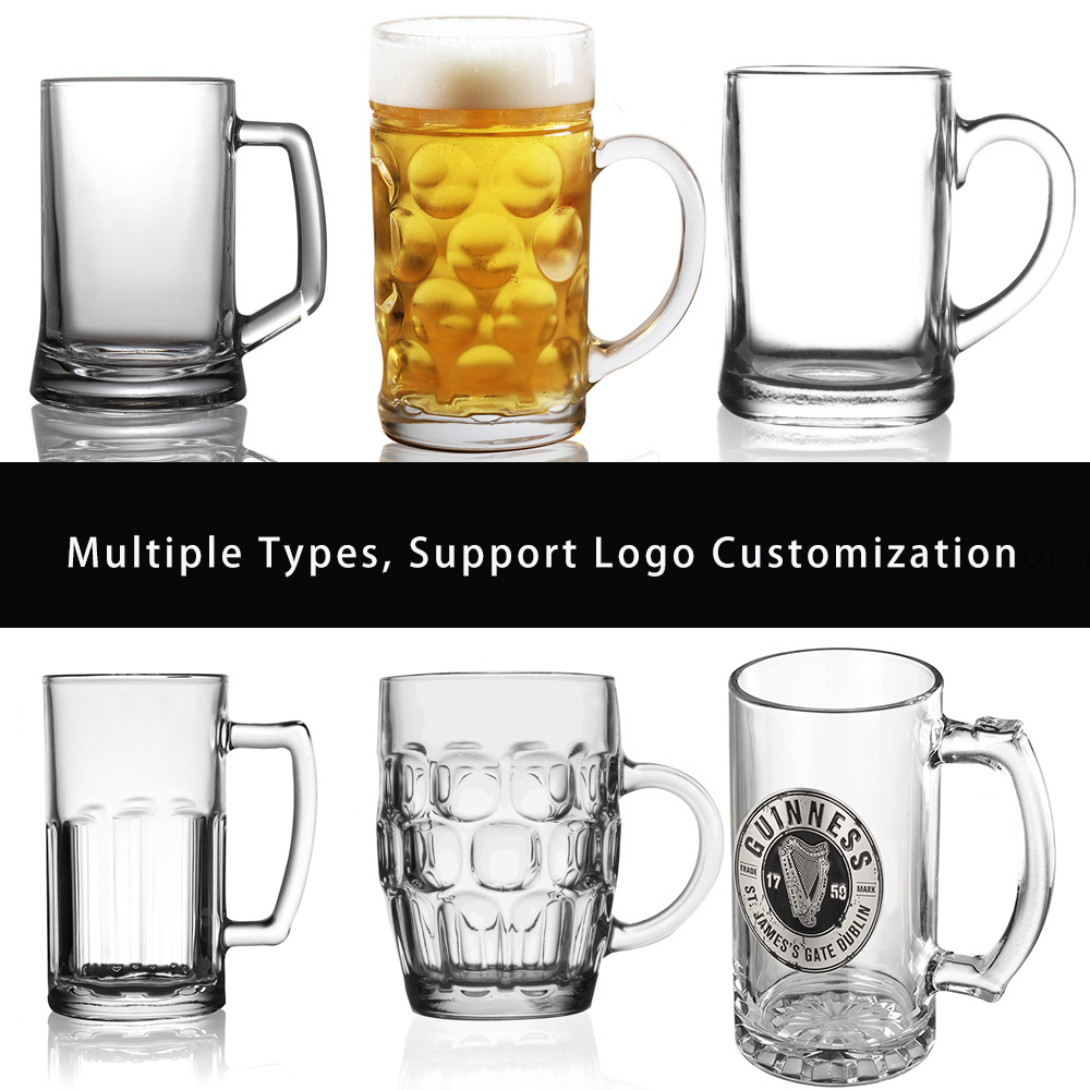 Home Hospitality Supplies Dinnerware Cup Wuhan Xinhuahang Household Goods Co., Ltd. Pub Bar Restaurant Wholesale Heavy Base 650ml 22oz Classic Large Solid Glass Beer Mugs & Steins with Handle for Water Juice