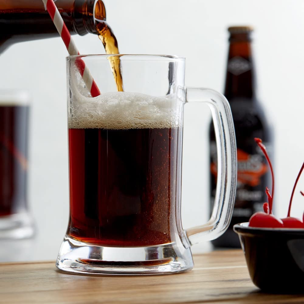 Pub Bar Restaurant Wholesale Heavy Base 650ml 22oz Classic Large Solid Glass Beer Mugs & Steins with Handle for Water Juice