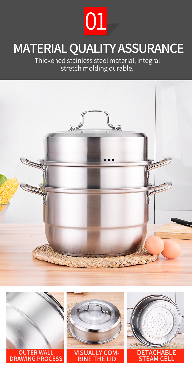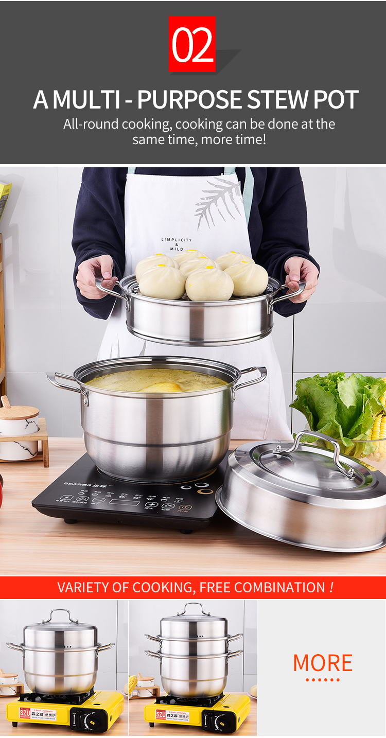 High capacity 28/30cm stainless steel cooking steamer pot family hotel cooking pot