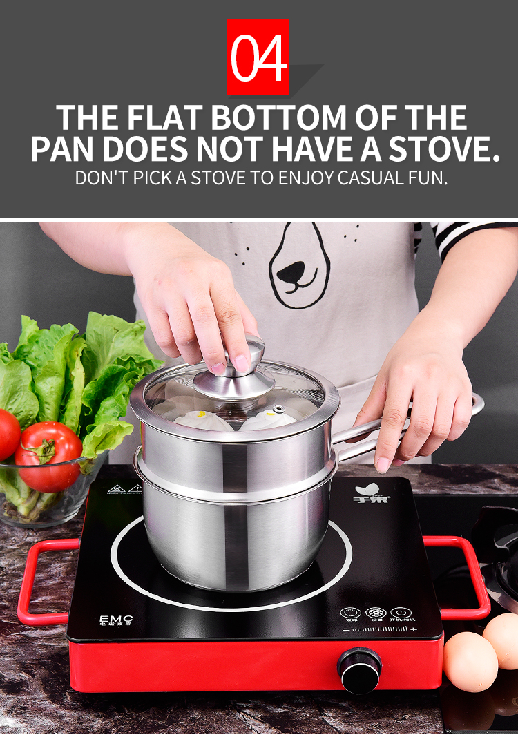 New type 304 stainless steel milk pot kitchen double bottom casserole small steamer pot