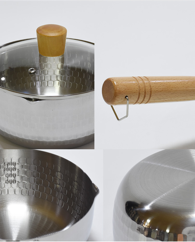 Japanese 430 stainless steel soup pot application of gas range induction cooker milk pot with wooden handle