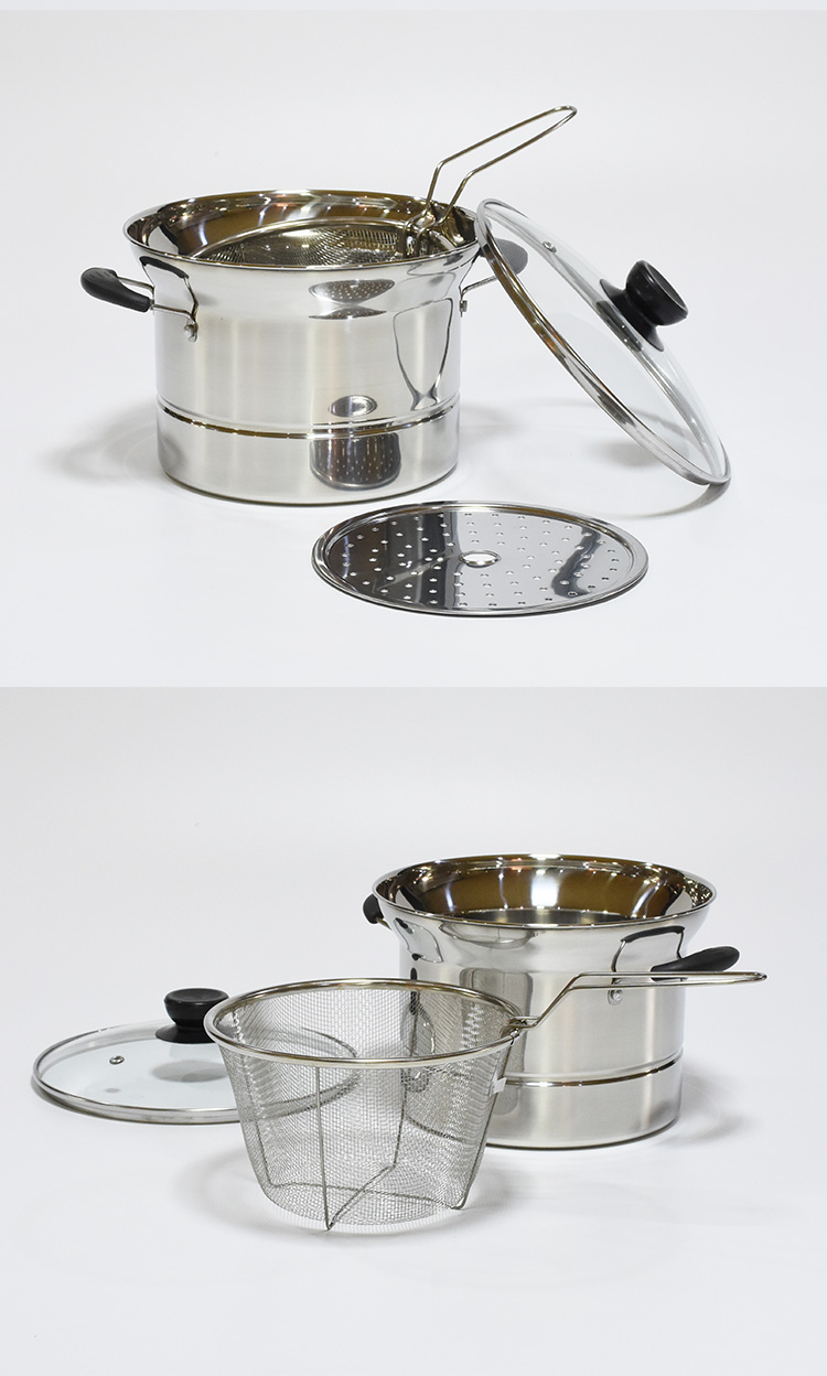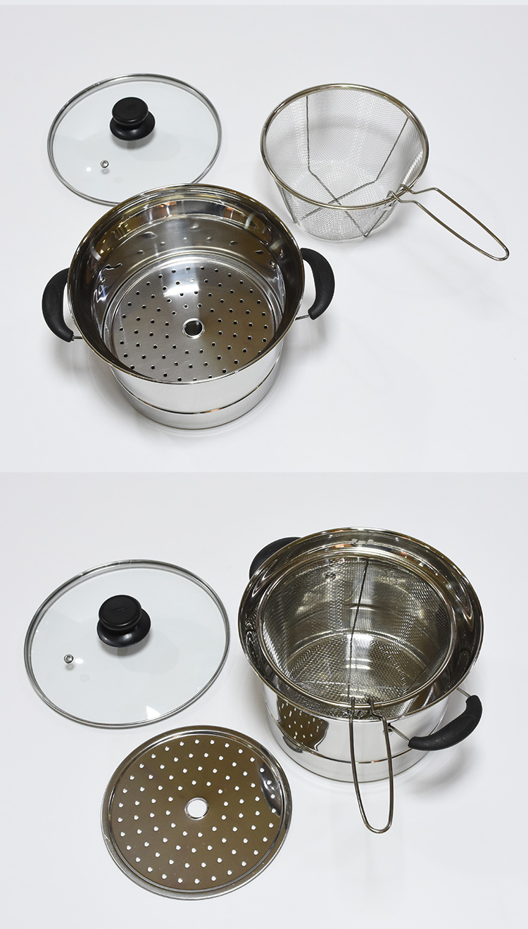 Hot sale on Amazon 22cm soup steamer pot set 201 stainless steel noodle pasta pot with strainer