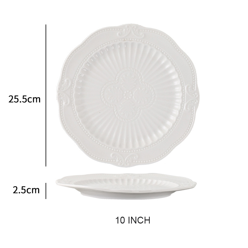 Good Quality Home European White Floral Pattern Embossed Porcelain Ceramic Charger Dessert Plates For Wedding