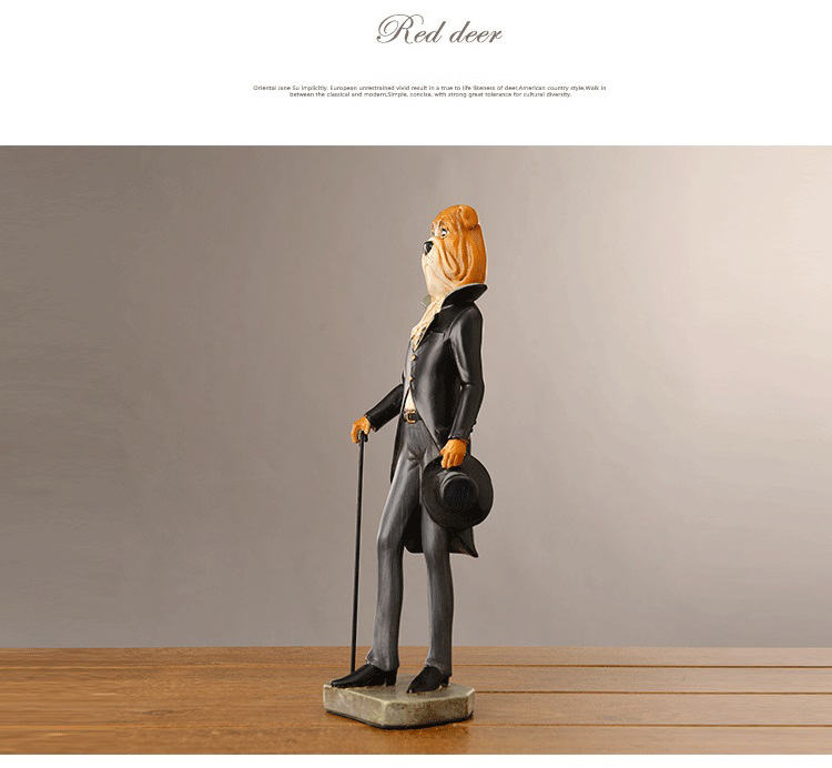 Modern Style Home Decor American Country Gentleman Dog Ornaments Art Crafts Resin Figurine