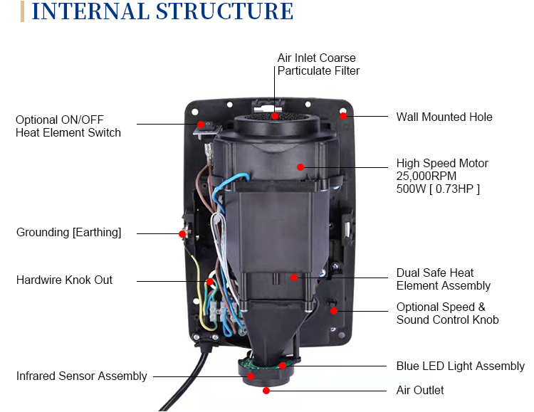 Home Hospitality Supplies Electric Appliance Other Appliances Other Appliances Zhejiang Kingwe Electrical Co.,Ltd. Factory Price Electric Wall Mounted Hot&Cold Intelligent Automatic Hand Dryer With Sensor