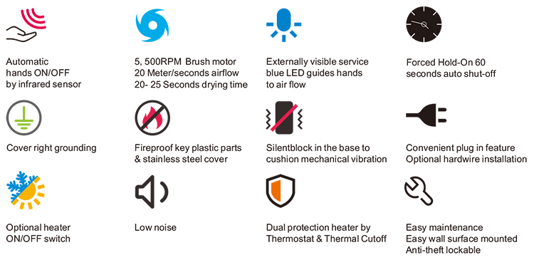 Home Hospitality Supplies Electric Appliance Other Appliances Other Appliances Zhejiang Kingwe Electrical Co.,Ltd. Sanitary Ware Wall Mounted Black Stainless Steel Bathroom Touchless Hand Dryer 2100w