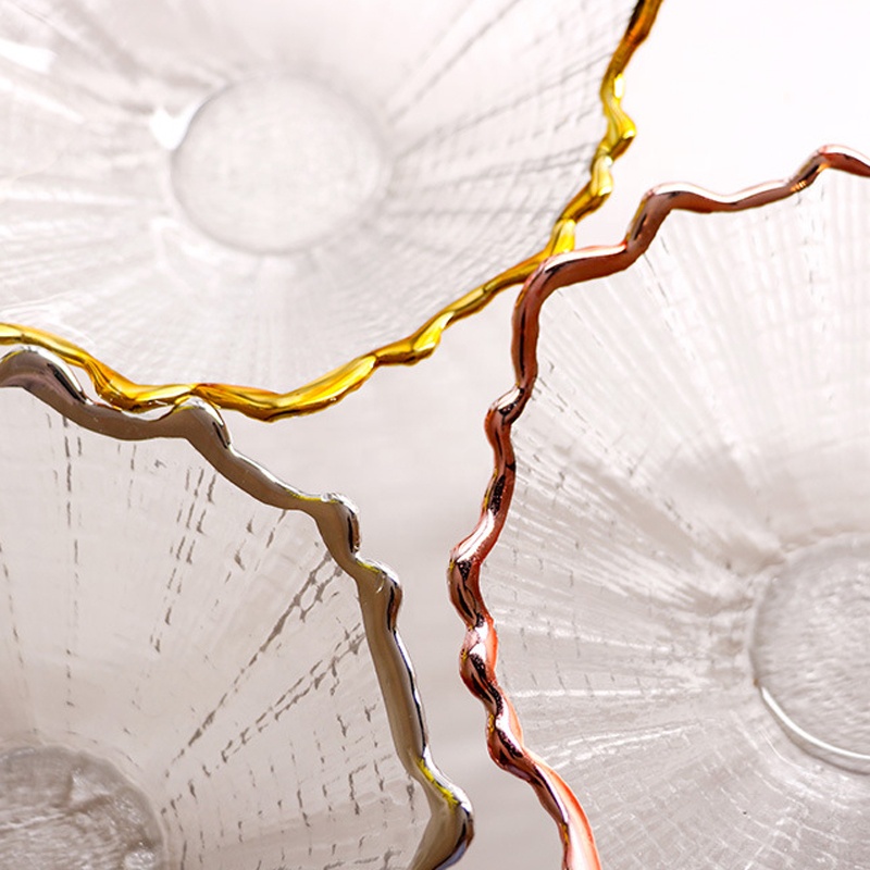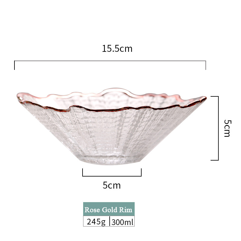 Creative Silver Rose Gold Rimmed Hammered 6inch Irregular Glass Bowl Vegetable and Fruit Salad Dessert Noodles Soup Bowls