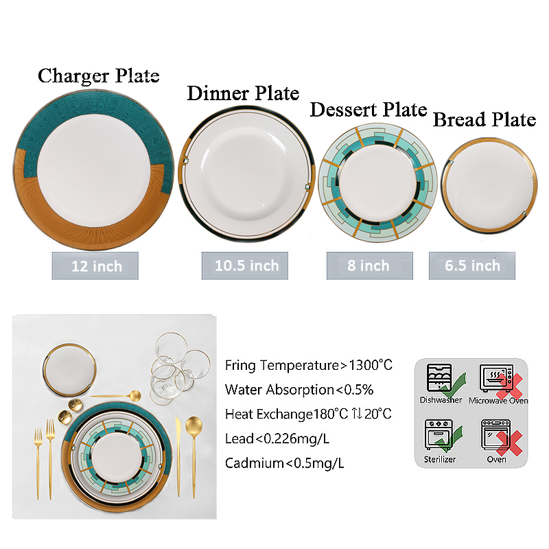 Home Hospitality Supplies Dinnerware Dinnerware Set Danyang Jingtian Import And Export Co., Ltd. European Style Simple Geometric Pattern Gold Rim Salad Entree Charger Plate for Wedding Decoration Party Event Dinner Tabletop