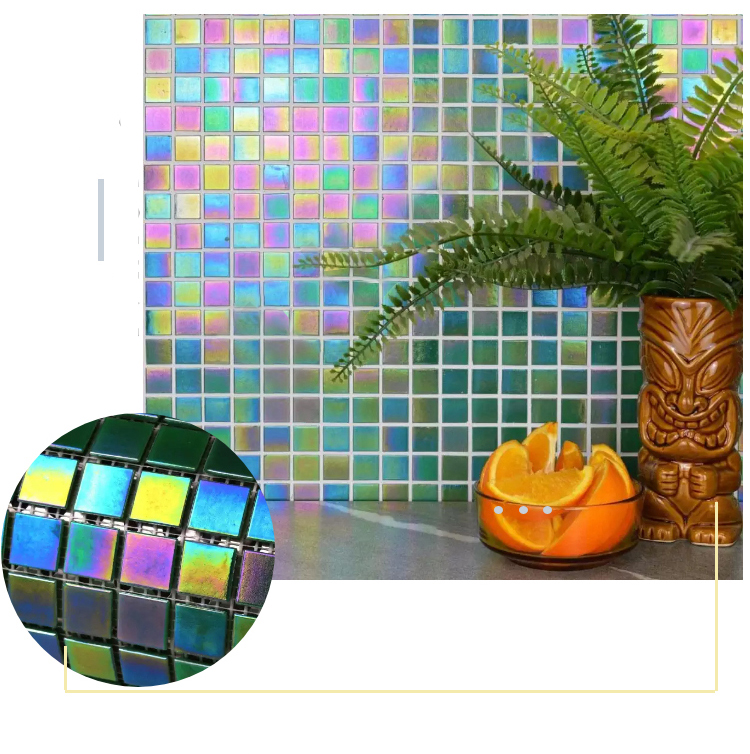 Wholesale Cheap Price Unique Blue Swimming Pool Iridescent Glass Mosaic Tile For Interior Wall Decoration