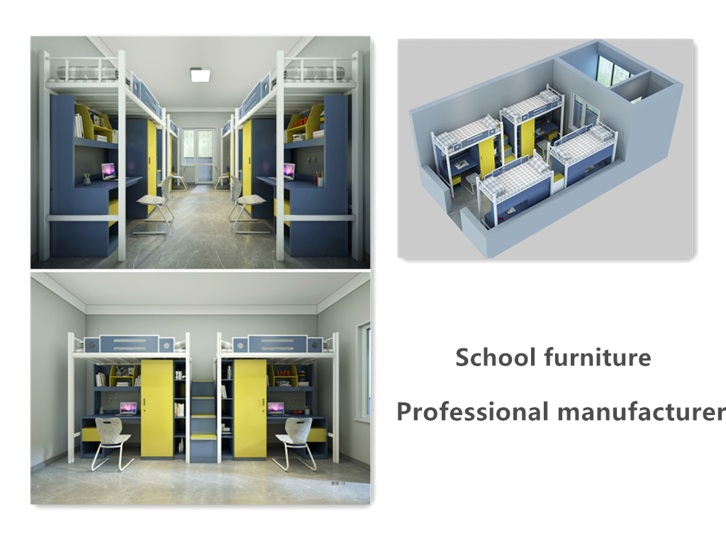 hot sale modern dormitory furniture loft school student accommodation beds bunk with desk