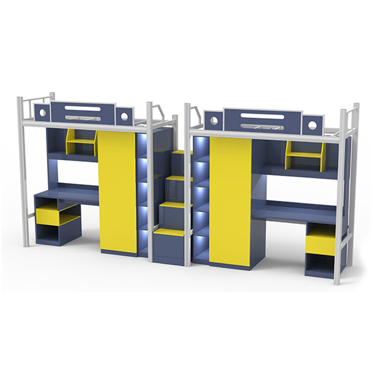wholesale school furniture college student dormitory bedroom steel loft bed with desk and drawer