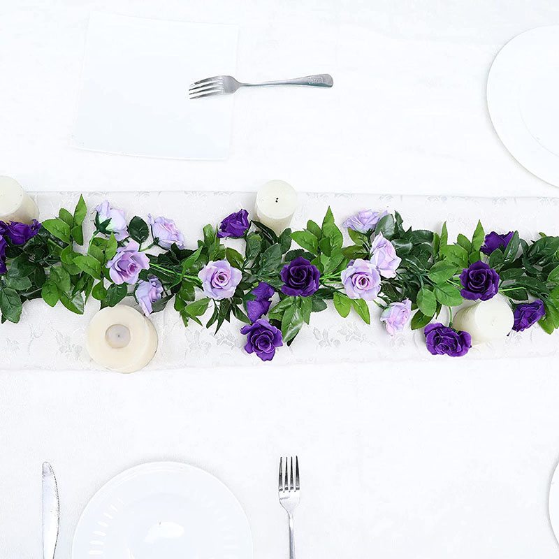 2022 New Design 8ft Length Purple Flower Artificial Greenery Garland Arch Garden Decorations