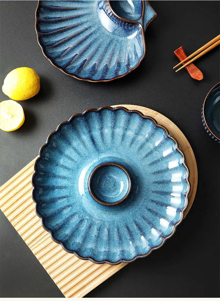 Japanese vintage under-glaze dumpling plate with vinegar dish sushi dipping sauce tableware snack breakfast dinner ceramic plate
