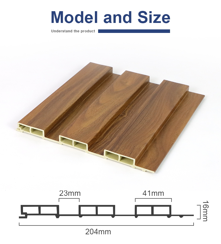 hot 204*16mm wood panel indoor walnut wood plastic composite panel composite wood cladding