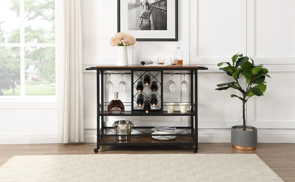 China Factory Supplier Industrial Bar Cart with Wine Rack and Glass Holder Mobile Wine Carts with Wheels