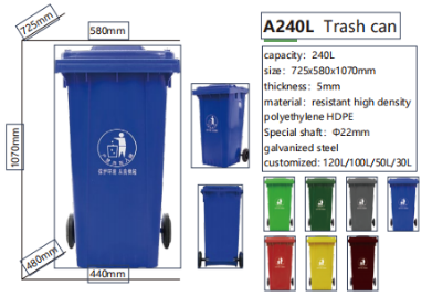 DY90003 660 Litre Flat-Lidded Plastic pedal bin Waste Container