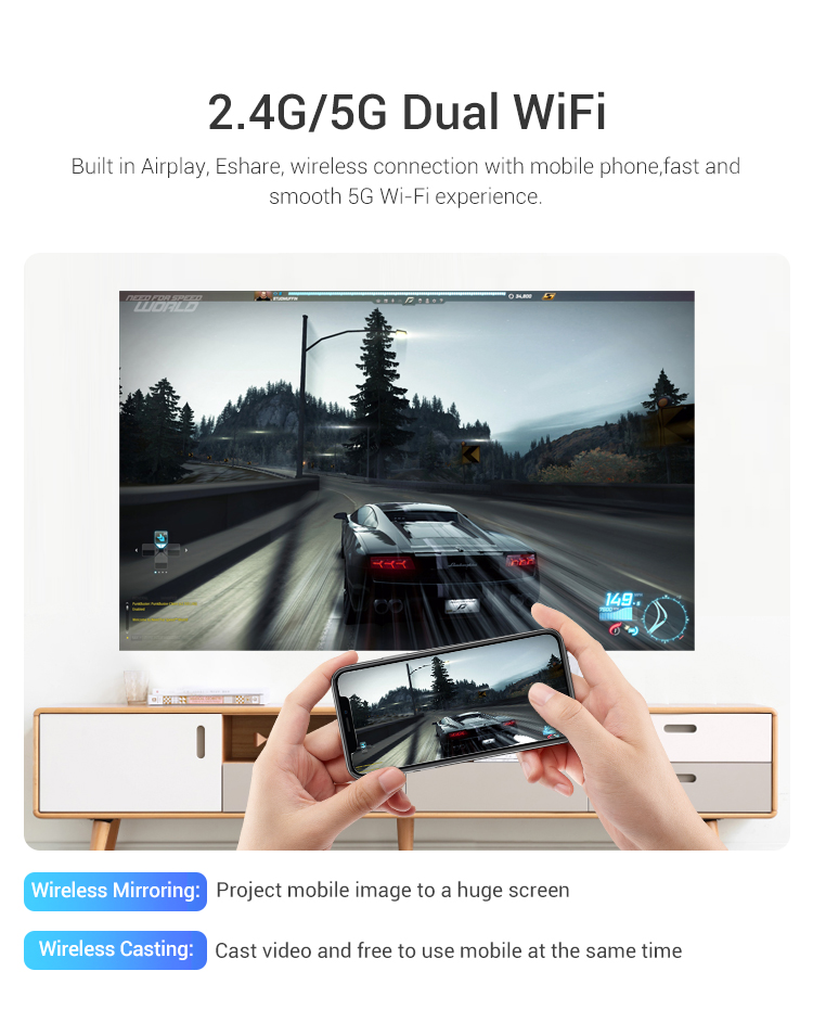 HOTACK Mini Smart Projector 4K Phone Portable Pico Cube LED DLP Android Wireless Factory Supply Movie Short Throw Projectors