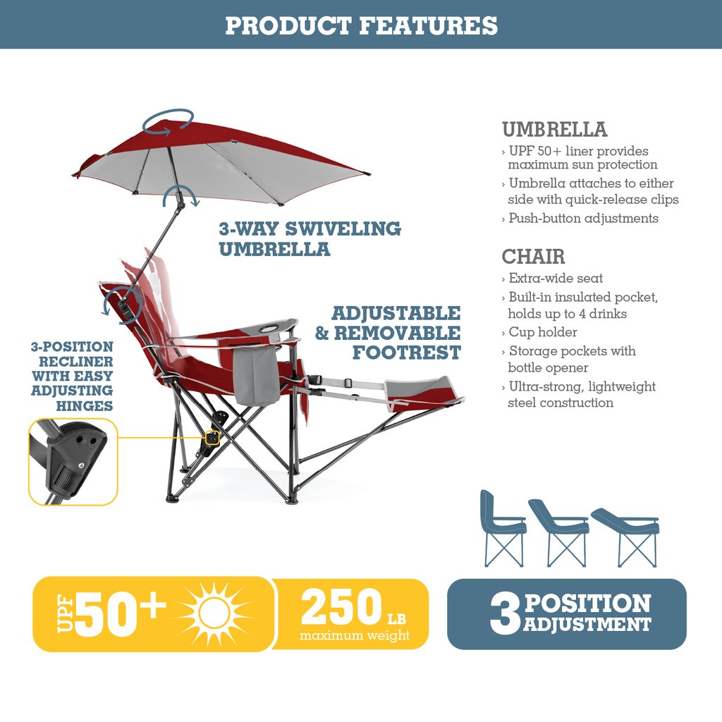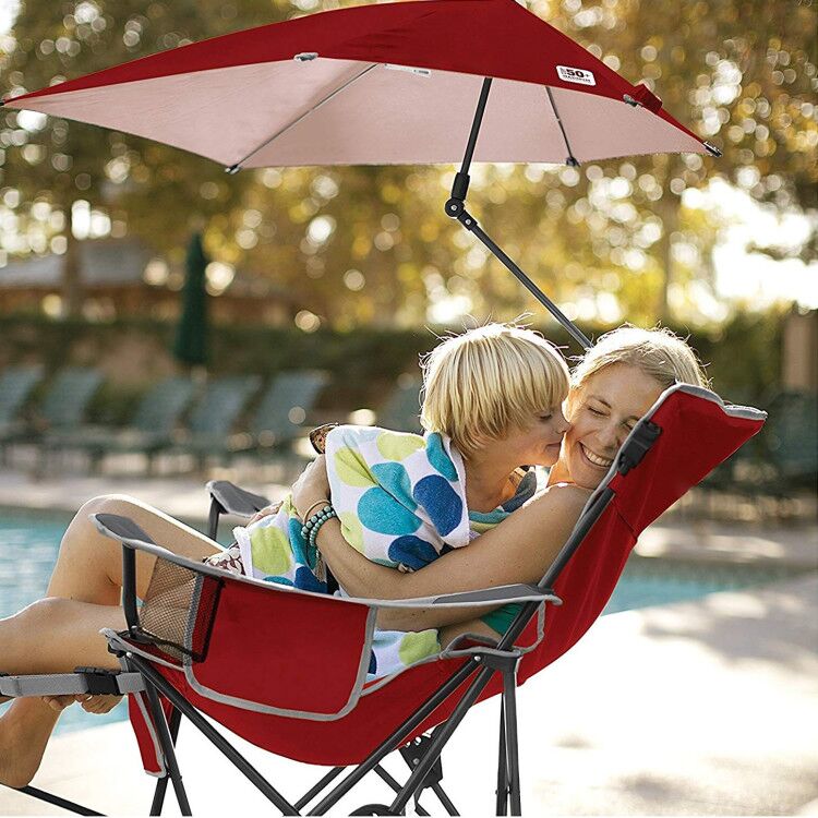 Factory Custom Folding 3-Position Recliner Portable Beach Chair with Removable Umbrella and Footrest