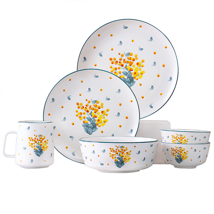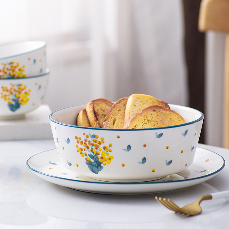 Household creative Japanese ceramic dinnerware set soup noodle bowl fruit dish ceramics plates