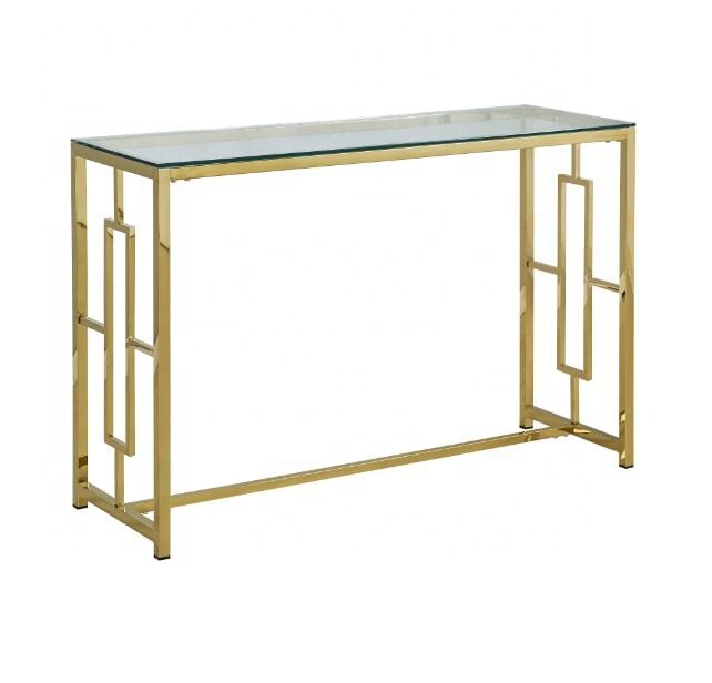 stainless steel gold colour half moon console table tempered glass entrance table vintage console table