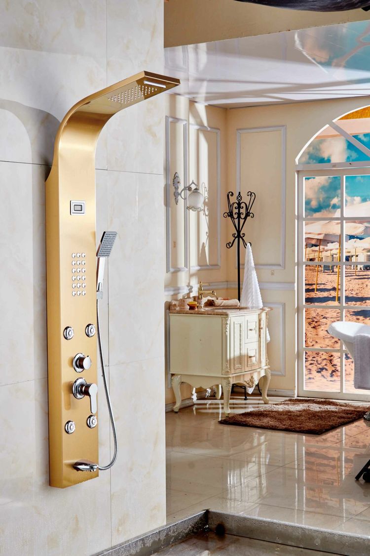 Home Bathroom Products,Sinks Bathroom Faucet & Shower Shower Panels Wenzhou Water Drop Sanitary Ware Co., Ltd. High Quality 304 Stainless Steel Black Panel Shower Thermostatic Led Display Screen Wall Mounted Shower Room Panel
