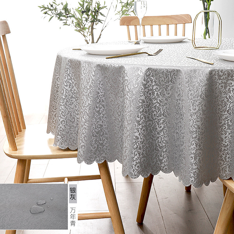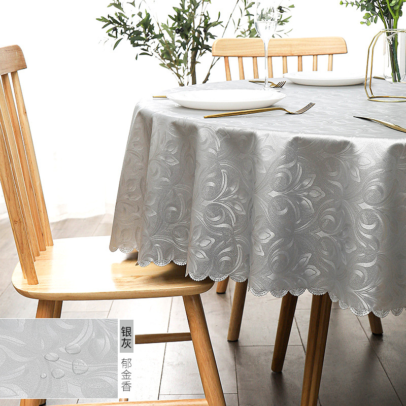 High Quality PU Round Waterproof Anti Oil PVC Damask Tablecloth For Household