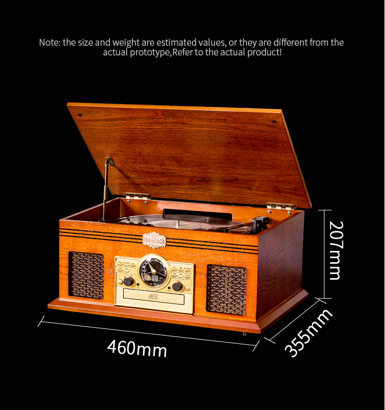 FM Analog Tuning Turntable w/ CD Player, Aux-in, Line-out, BT function and Built-in Stereo Speakers wooden turntable player