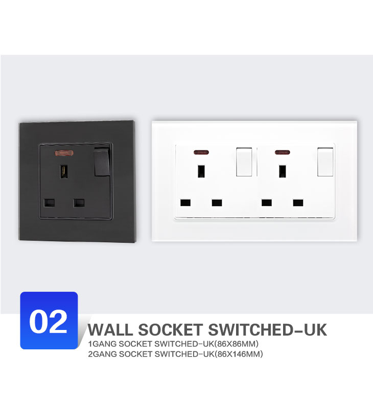 Home MEPF Equipment & Electrical Sockets & Plugs Wenzhou Laiwo Electrical Technology Co., Ltd. WOSOM Hot sale TKKSU-1 1Gang Socket Switched with 2USB-UK double socket uk british standard
