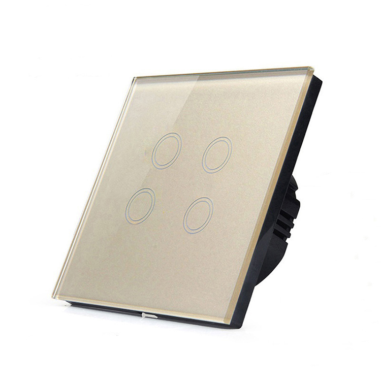 Home MEPF Equipment & Electrical Switches Other Switch Wenzhou Laiwo Electrical Technology Co., Ltd. 4Gang 1 Way Wall Touch Light Switch,Wall power sensor switch,7colors Crystal Glass Panel