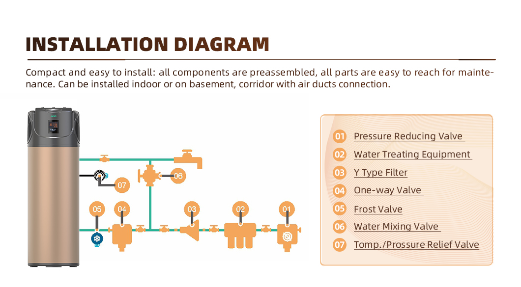 JNOD Factory OEM All-In-One Heat Pump Water Heaters for Air Source Heating Water Domestic Hot Water Heatpump