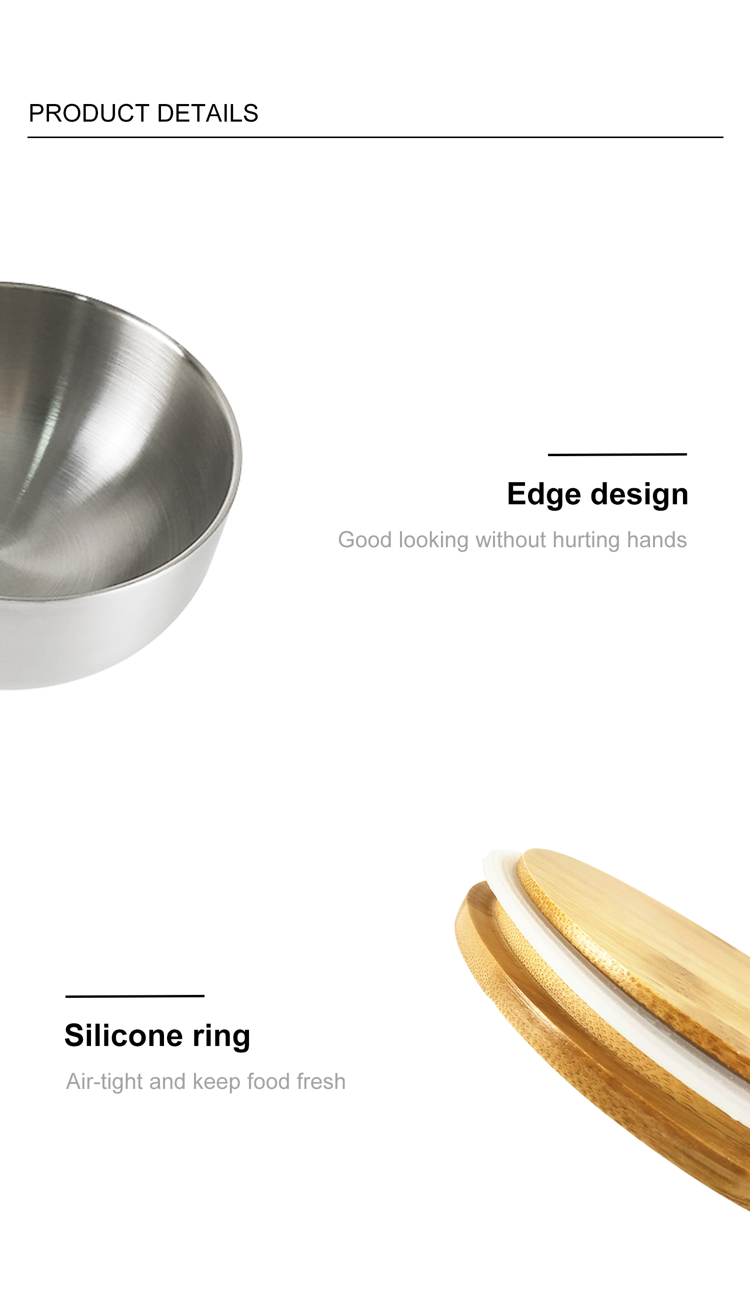 Product Name | LIHONG factory price custom double wall rice salad bowl metal food bowl kitchen stainless steel dough bowl with wood lid |