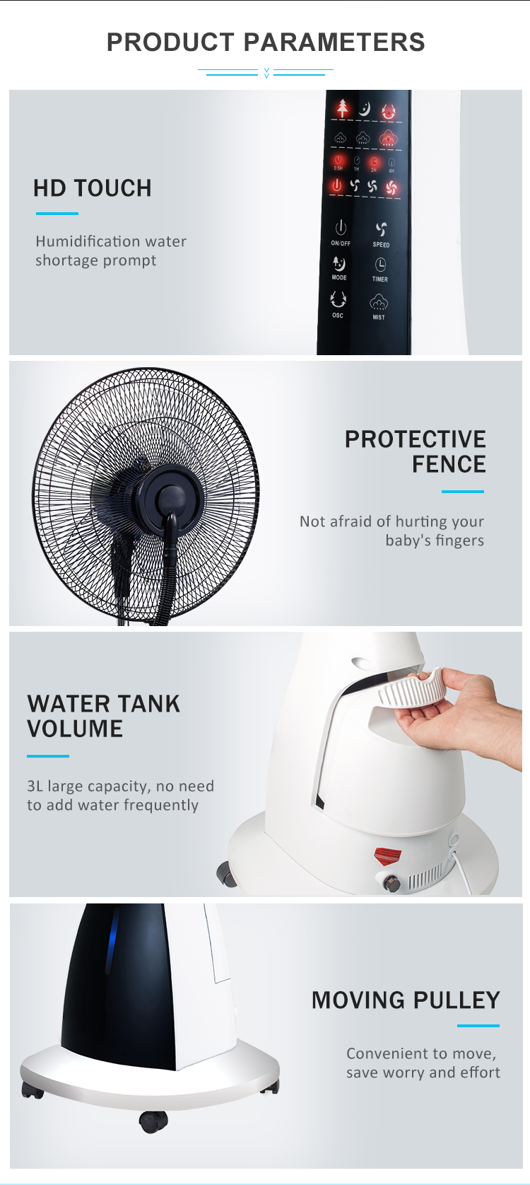 16 inch Water mist fan with mist sprayer indoor cool mist fans cooling air with remote control motor electric stand fans