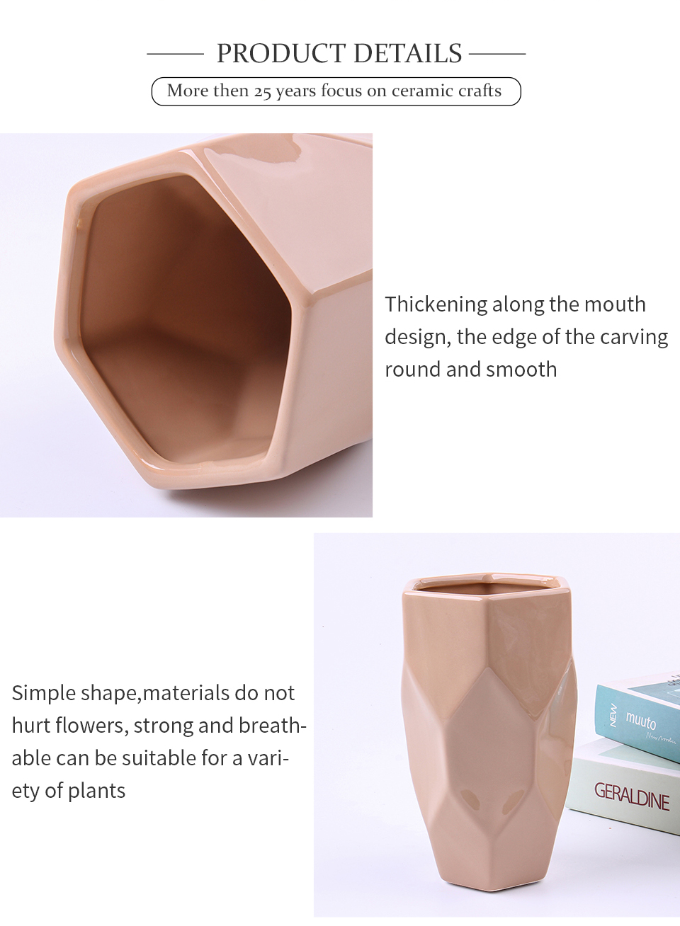 Home Hospitality Supplies Table Display Vase Chaozhou Yongsheng Ceramics Manufacturing Co., Ltd. Wholesale Ceramic Geometry Decor Home Glazed Dry Flower Pink Vase