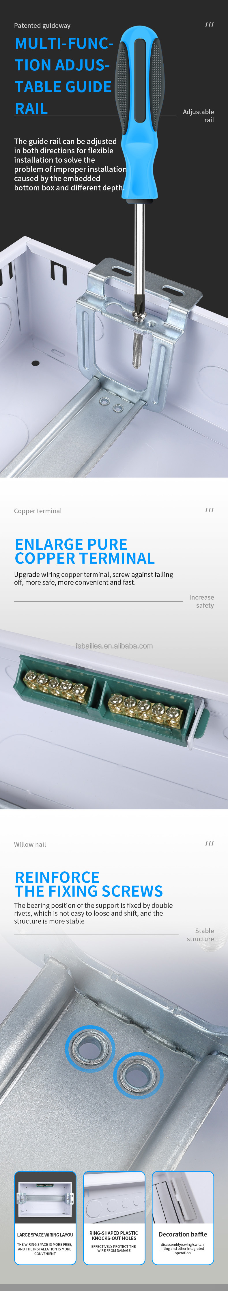Home MEPF Equipment & Electrical Electrical System Low Voltage Power Distribution Equipment and Materials Distribution Box Foshan Baili Lidian Technology Co., Ltd. BAILI Q3 21way economical model Metal MCB Enclosure flush mounting or surface mounting Panel Distribution Box